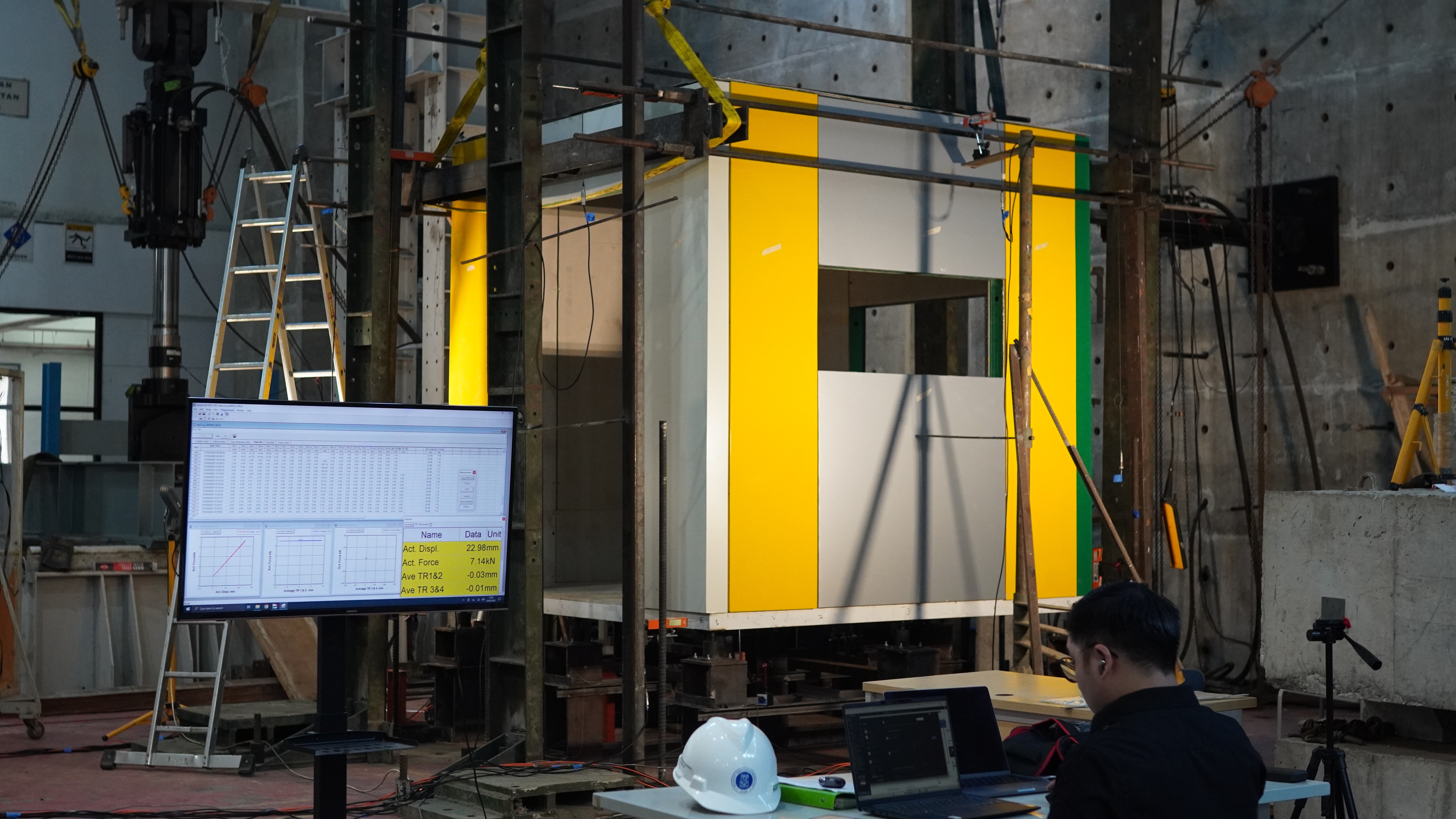 Dengan kata lain, ErgaPods didorong secara bertahap hingga bergeser 6 cm untuk mensimulasikan kondisi gempa kuat. Hasilnya, struktur tetap stabil dan tidak mengalami kerusakan yang mengancam keselamatan, sebuah indikator penting dalam penilaian bangunan tahan gempa.