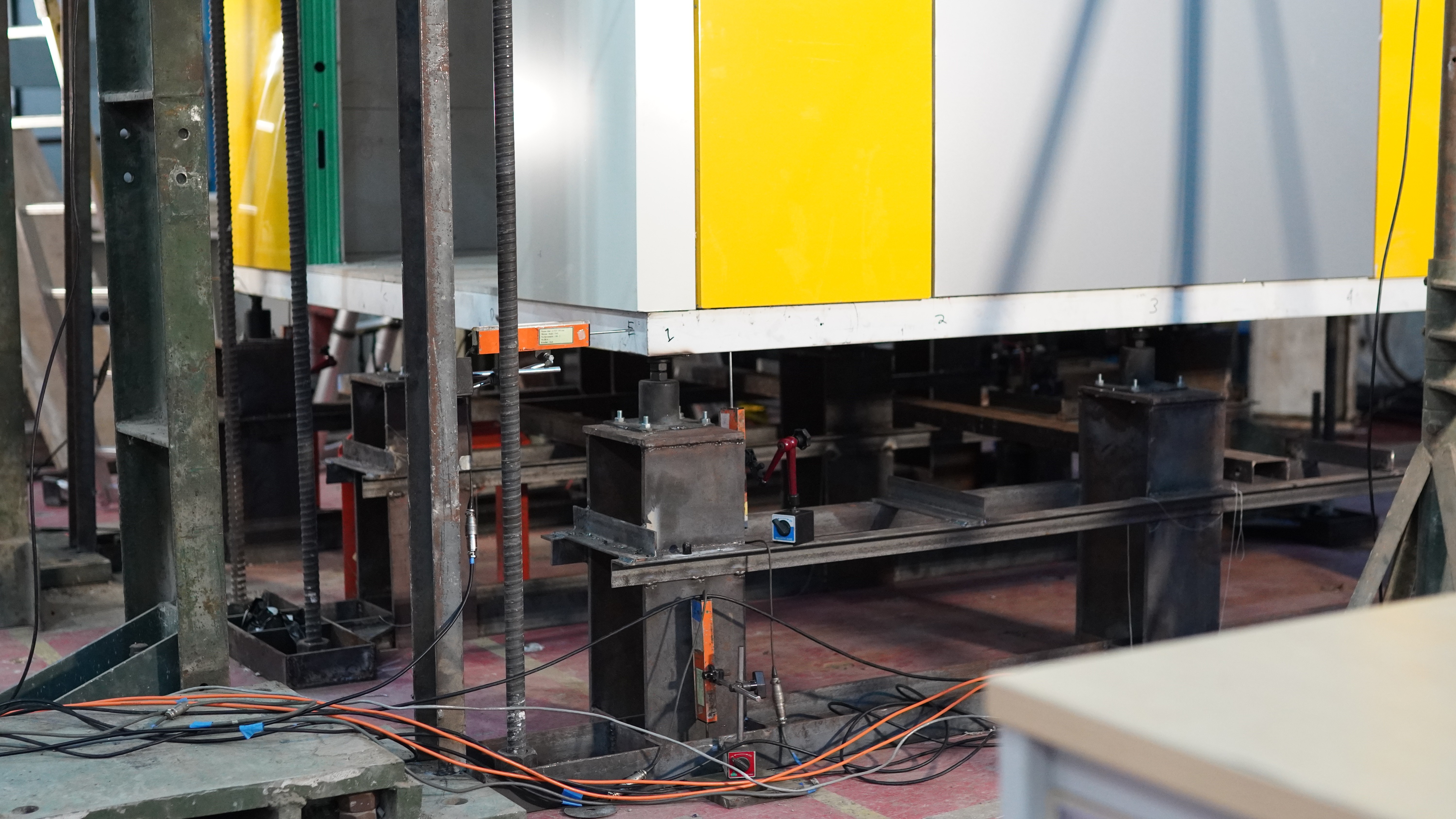 Untuk memastikan pengukuran yang akurat, pengujian menggunakan alat LVDT (Linear Variable Differential Transformer). Alat ini mencatat defleksi, yaitu perubahan bentuk atau perpindahan struktur, baik pada balok, kolom, maupun elemen lain saat menerima beban gempa buatan.