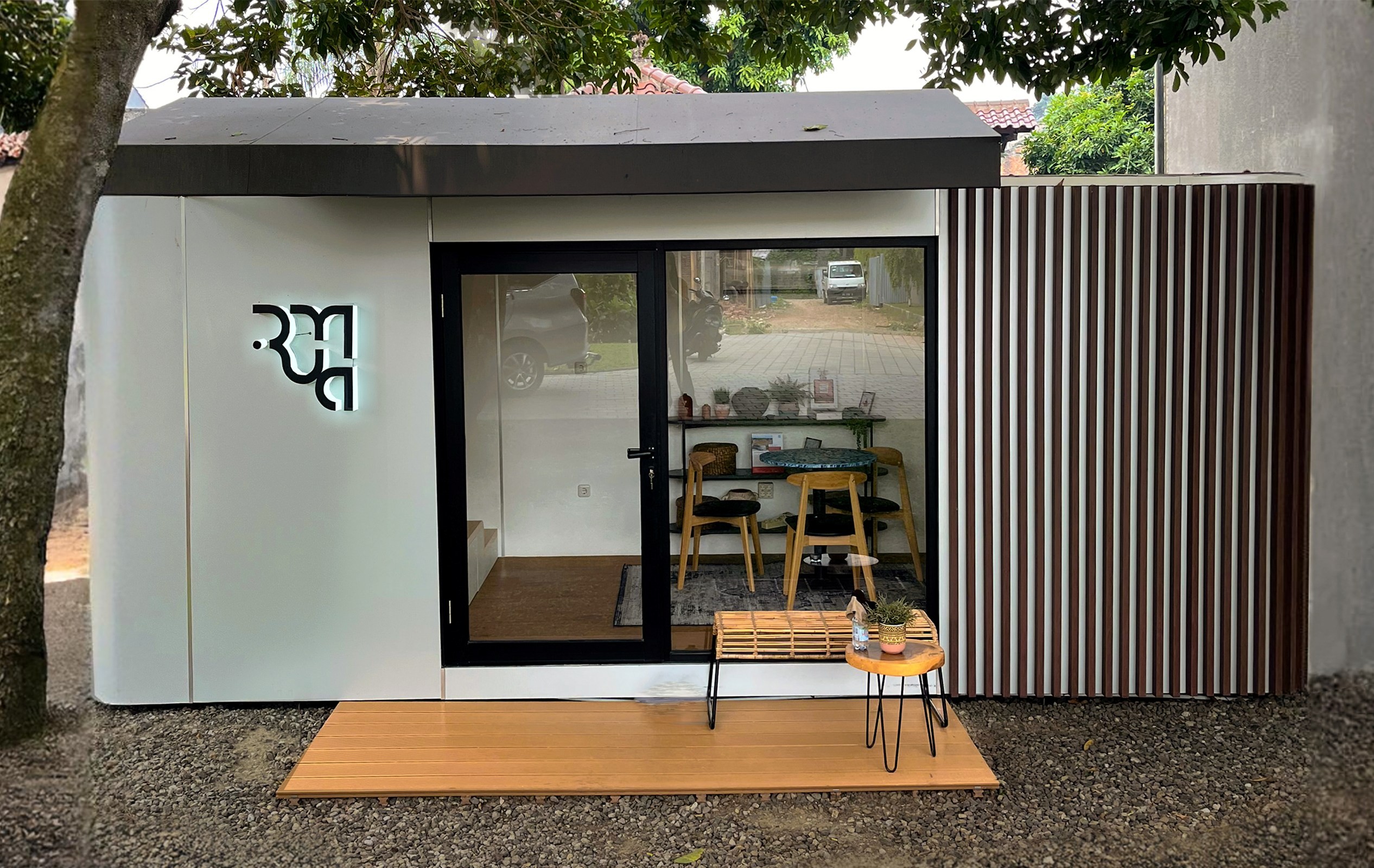 Comfortable & professional ambience: tata ruang yang rapi, pencahayaan baik, furniture lounge/kelas menengah ke atas, sehingga pengunjung merasa nyaman dan percaya terhadap reputasi pengembang. Seperti marketing gallery dari Ruma ID yang dibangun oleh AMODA ini: